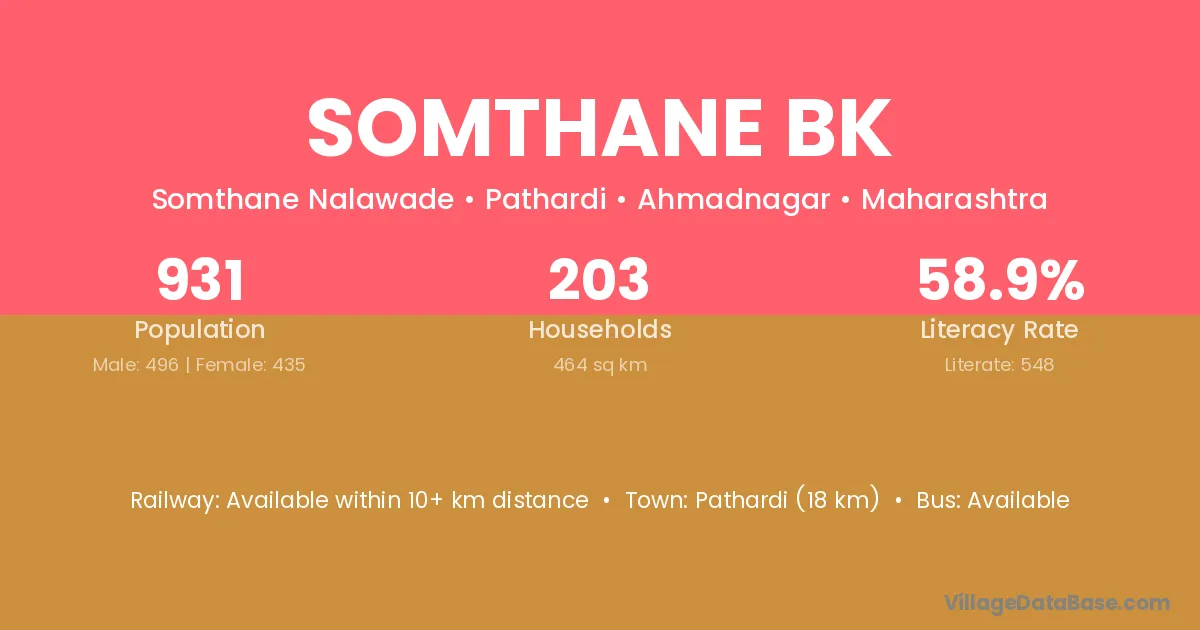 Somthane Bk village has a total population of 931 people, of which 496 are males and 435 are females.