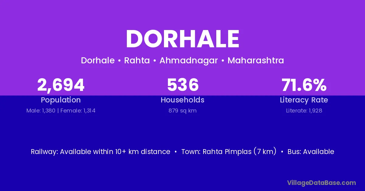 Rahta Pimplas (7 km) is the nearest town to Dorhale village for major economic activities and is located approximately 7 km away.