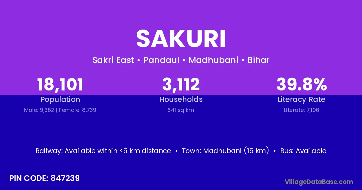 Sakuri village has a total population of 10,105 people, of which 5,263 are males and 4,842 are females.
