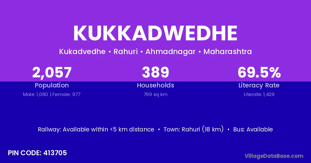 Rahuri (18 km) is the nearest town to Kukkadwedhe village for major economic activities and is located approximately 18 km away.