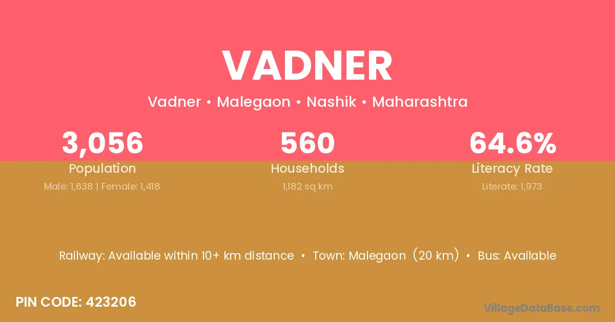 Rahuri (20 km) is the nearest town to Vadner village for major economic activities and is located approximately 20 km away.