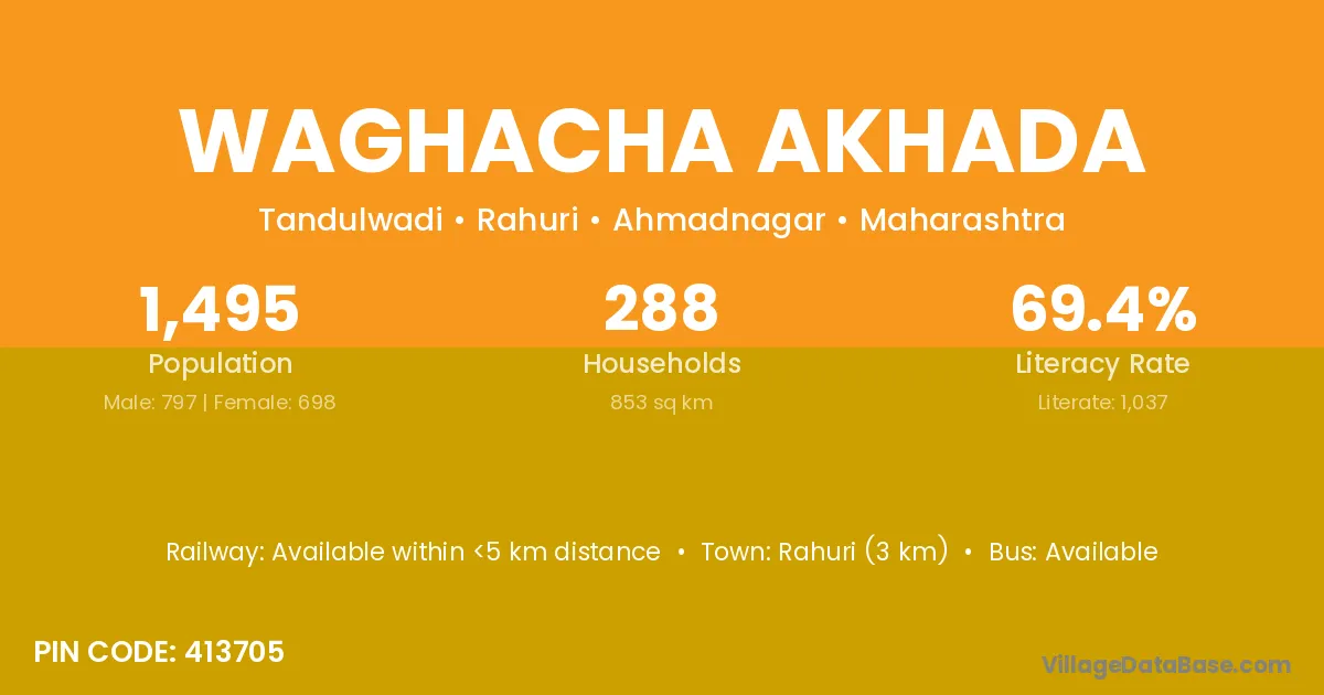 Rahuri (3 km) is the nearest town to Waghacha Akhada village for major economic activities and is located approximately 3 km away.