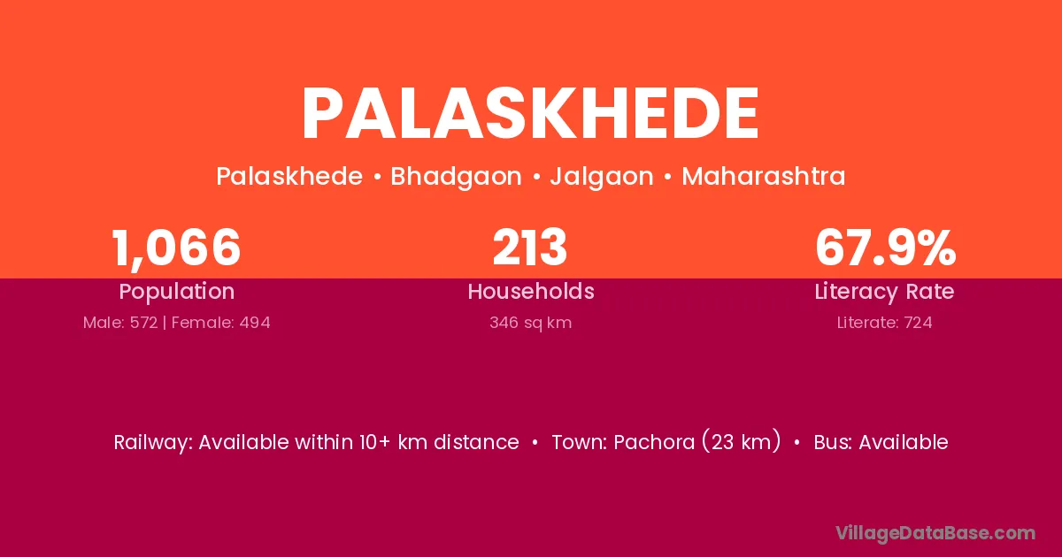 Sangamner (23 km) is the nearest town to Palaskhede village for major economic activities and is located approximately 23 km away.