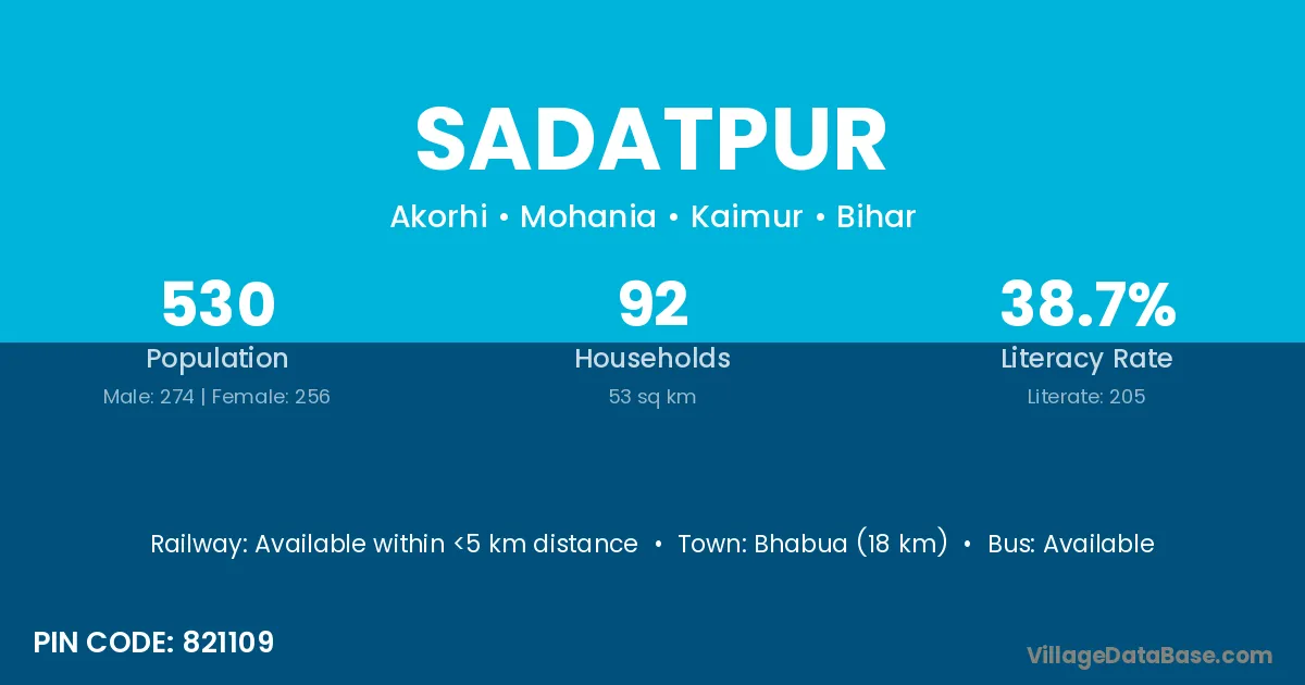 Sadatpur village has a total population of 1,815 people, of which 928 are males and 887 are females.