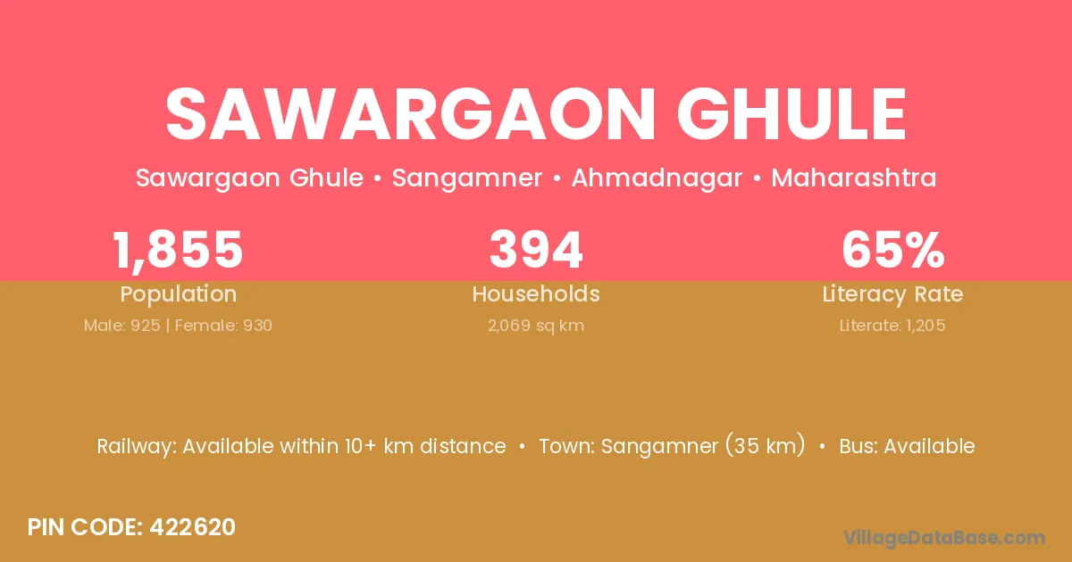 Sangamner (35 km) is the nearest town to Sawargaon Ghule village for major economic activities and is located approximately 35 km away.