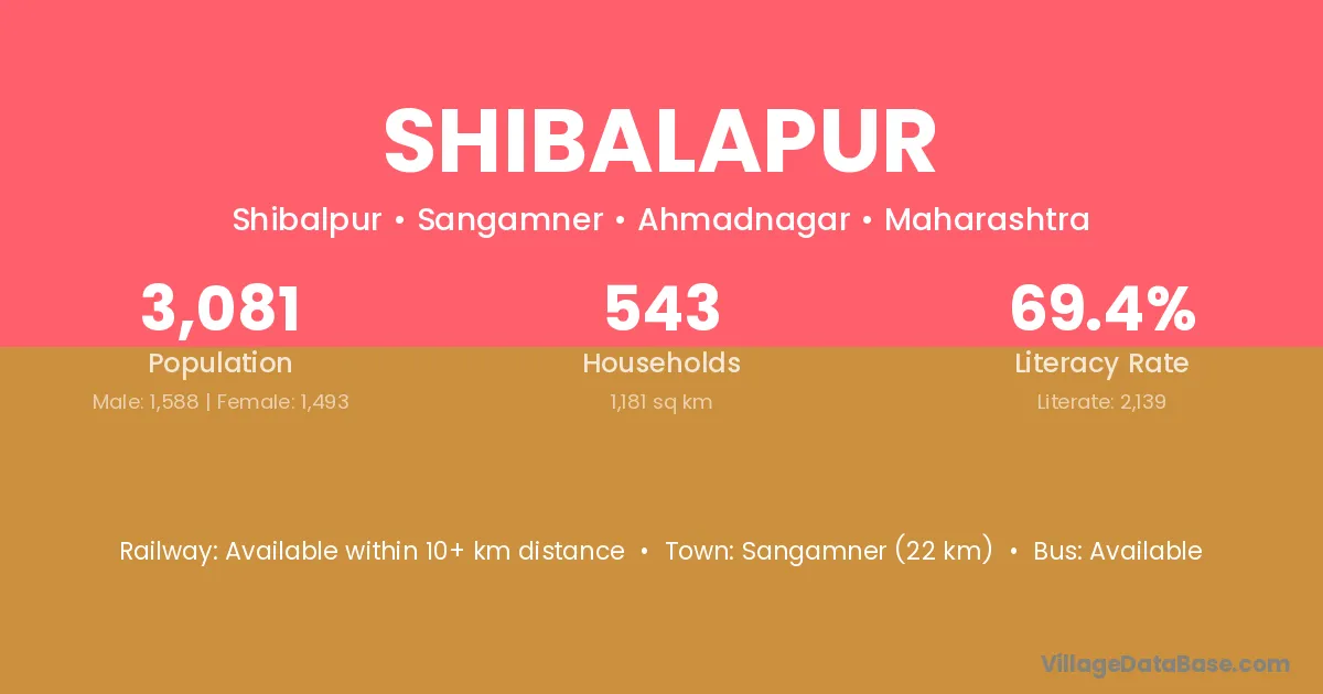Sangamner (22 km) is the nearest town to Shibalapur village for major economic activities and is located approximately 22 km away.