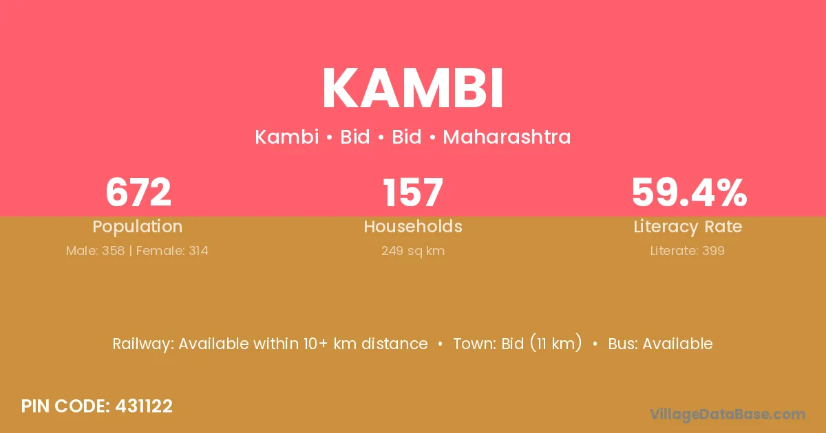Ahmadnagar (90 km) is the nearest town to Kambi village for major economic activities and is located approximately 90 km away.