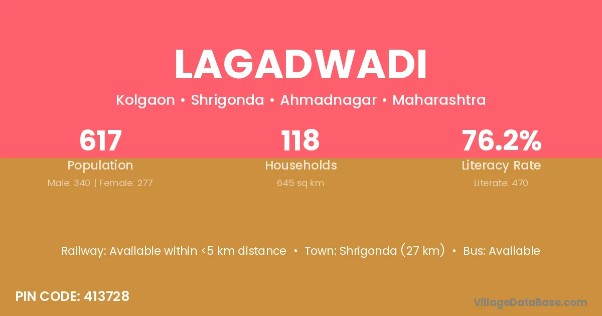 Shrigonda (27 km) is the nearest town to Lagadwadi village for major economic activities and is located approximately 27 km away.