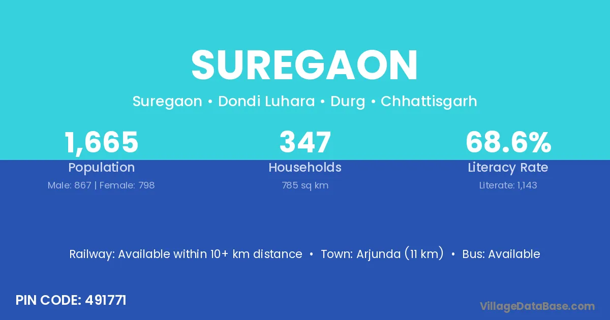 Suregaon village has a total population of 1,417 people, of which 723 are males and 694 are females.