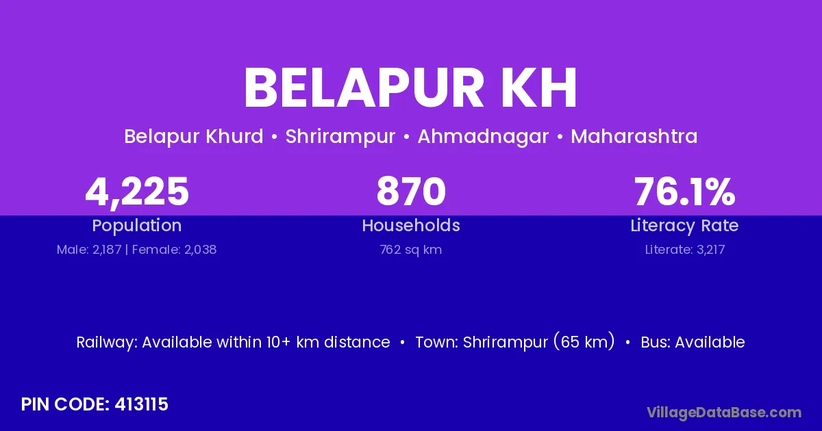Shrirampur (65 km) is the nearest town to Belapur Kh village for major economic activities and is located approximately 65 km away.