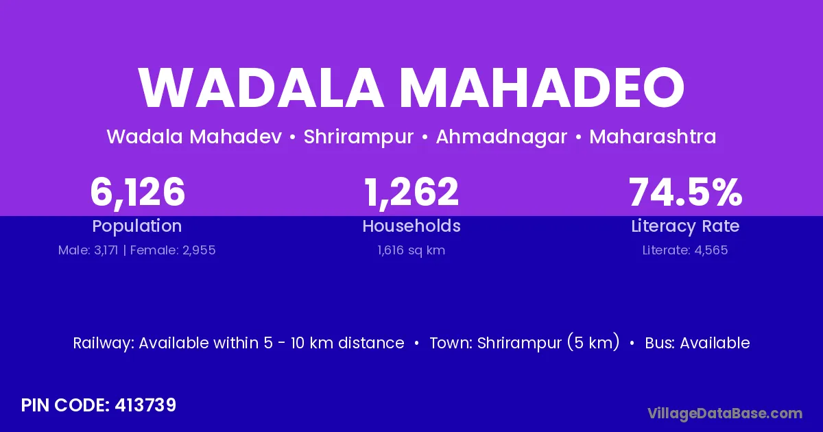 Shrirampur (5 km) is the nearest town to Wadala Mahadeo village for major economic activities and is located approximately 5 km away.