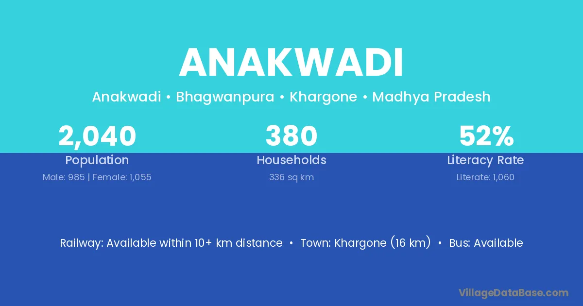Akola (24 km) is the nearest town to Anakwadi village for major economic activities and is located approximately 24 km away.