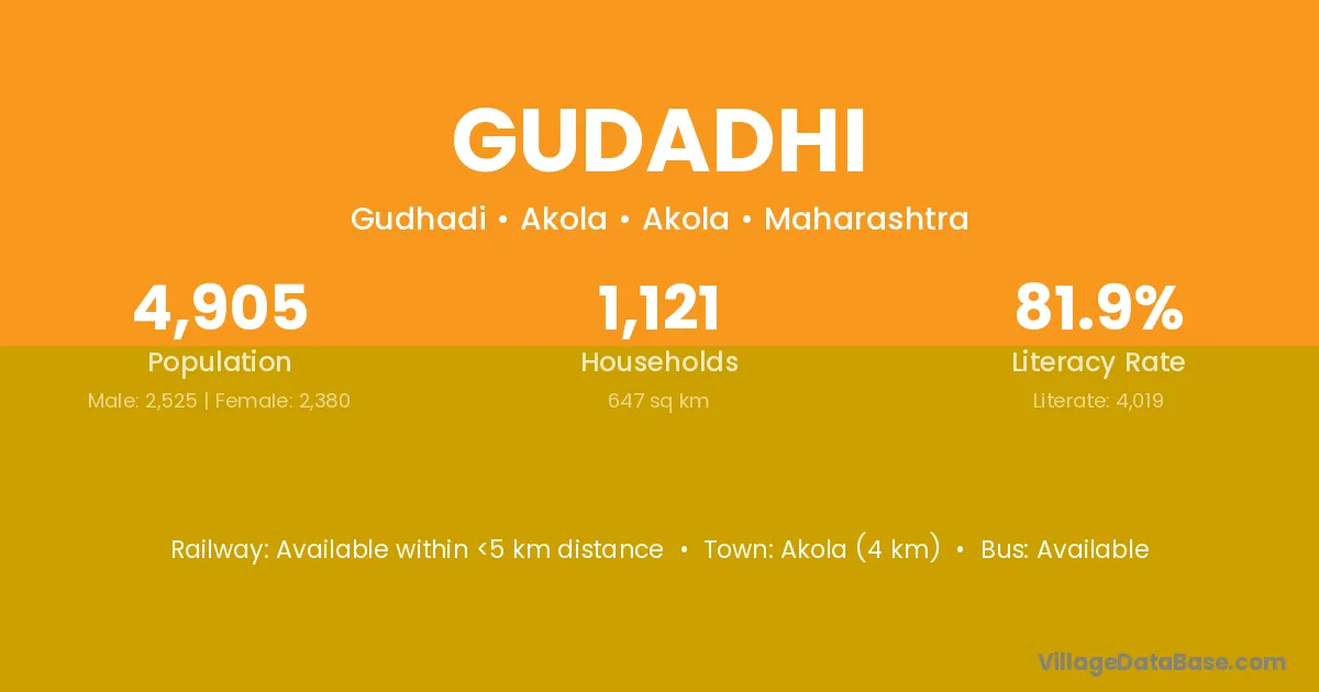 Akola (4 km) is the nearest town to Gudadhi village for major economic activities and is located approximately 4 km away.