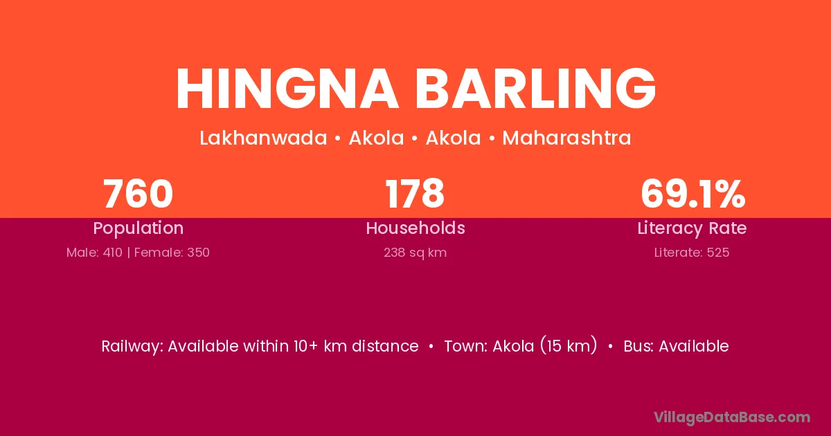 Akola (15 km) is the nearest town to Hingna Barling village for major economic activities and is located approximately 15 km away.
