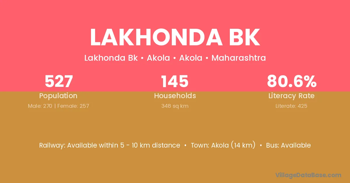Akola (14 km) is the nearest town to Lakhonda Bk village for major economic activities and is located approximately 14 km away.