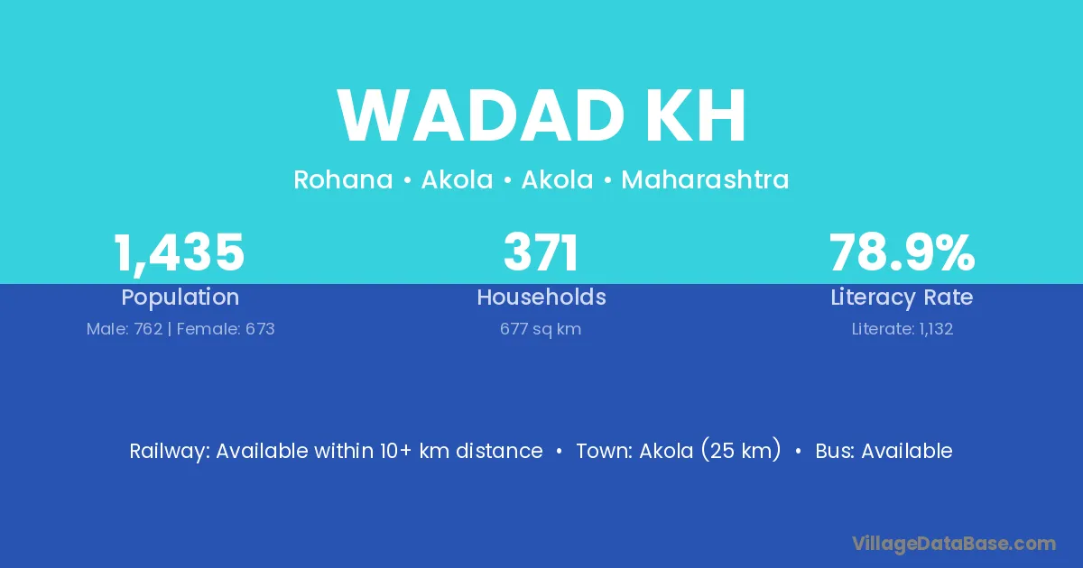 Akola (25 km) is the nearest town to Wadad Kh village for major economic activities and is located approximately 25 km away.