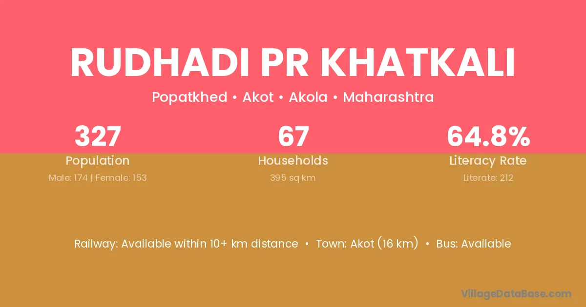 Akot (16 km) is the nearest town to Rudhadi Pr Khatkali village for major economic activities and is located approximately 16 km away.