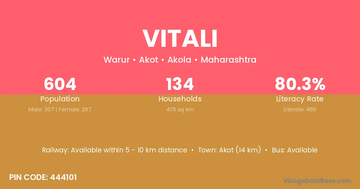 Akot (14 km) is the nearest town to Vitali village for major economic activities and is located approximately 14 km away.