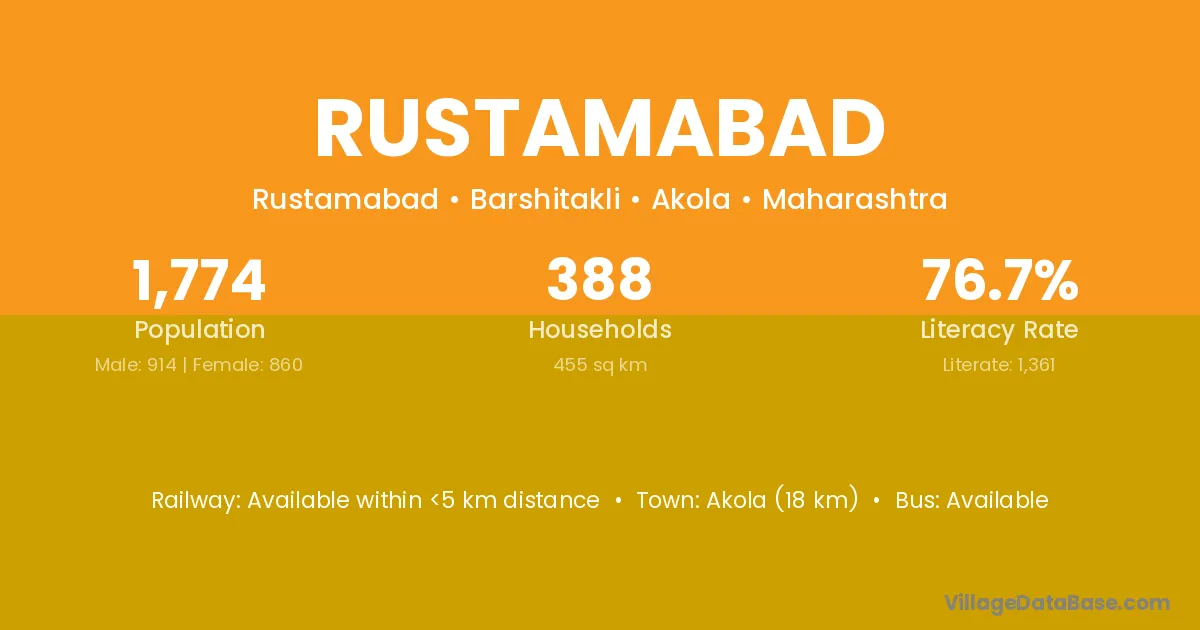 Akola (18 km) is the nearest town to Rustamabad village for major economic activities and is located approximately 18 km away.