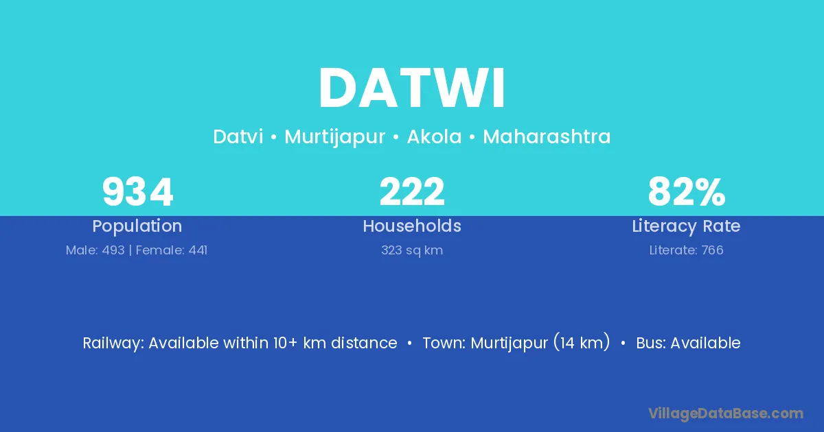 Murtijapur (14 km) is the nearest town to Datwi village for major economic activities and is located approximately 14 km away.