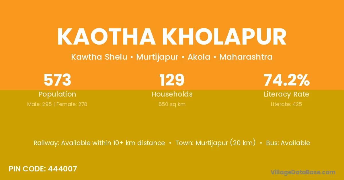 Murtijapur (20 km) is the nearest town to Kaotha Kholapur village for major economic activities and is located approximately 20 km away.