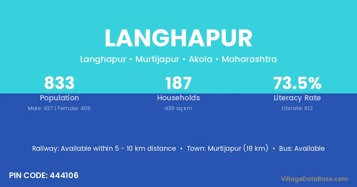 Murtijapur (18 km) is the nearest town to Langhapur village for major economic activities and is located approximately 18 km away.