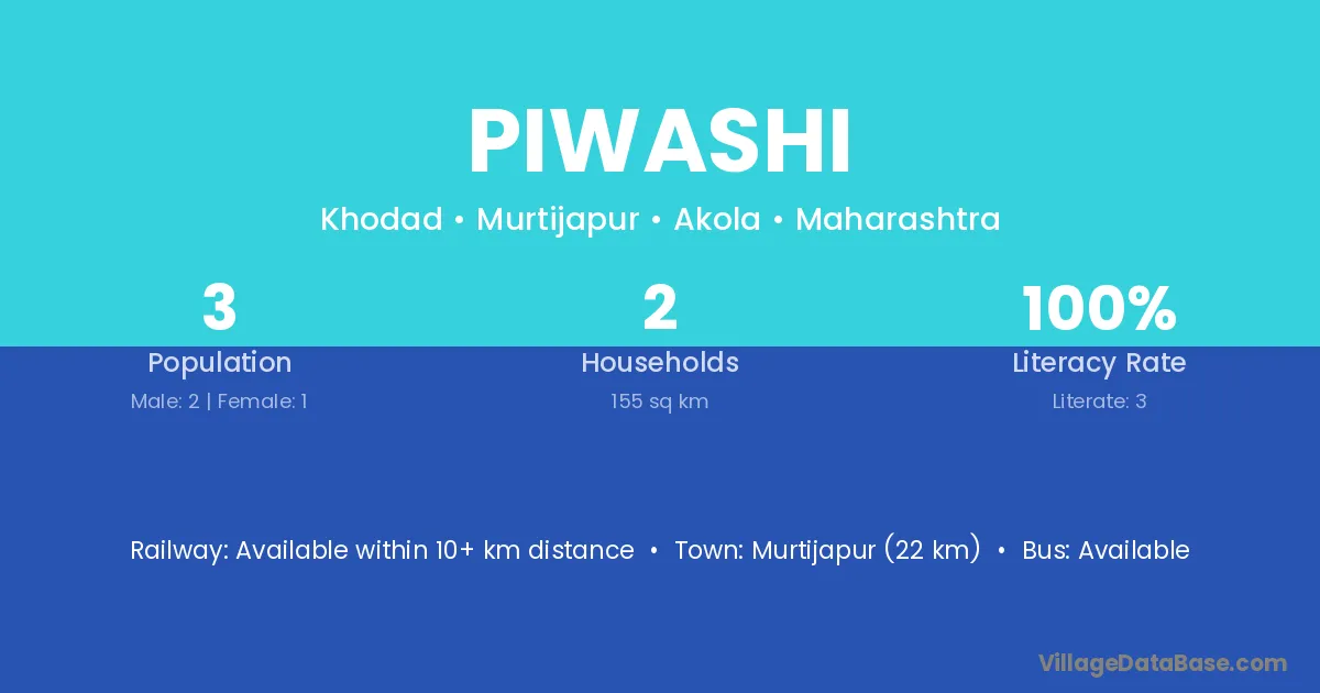 Murtijapur (22 km) is the nearest town to Piwashi village for major economic activities and is located approximately 22 km away.