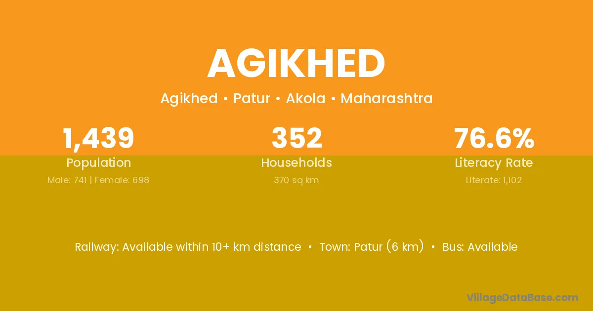 Patur (6 km) is the nearest town to Agikhed village for major economic activities and is located approximately 6 km away.