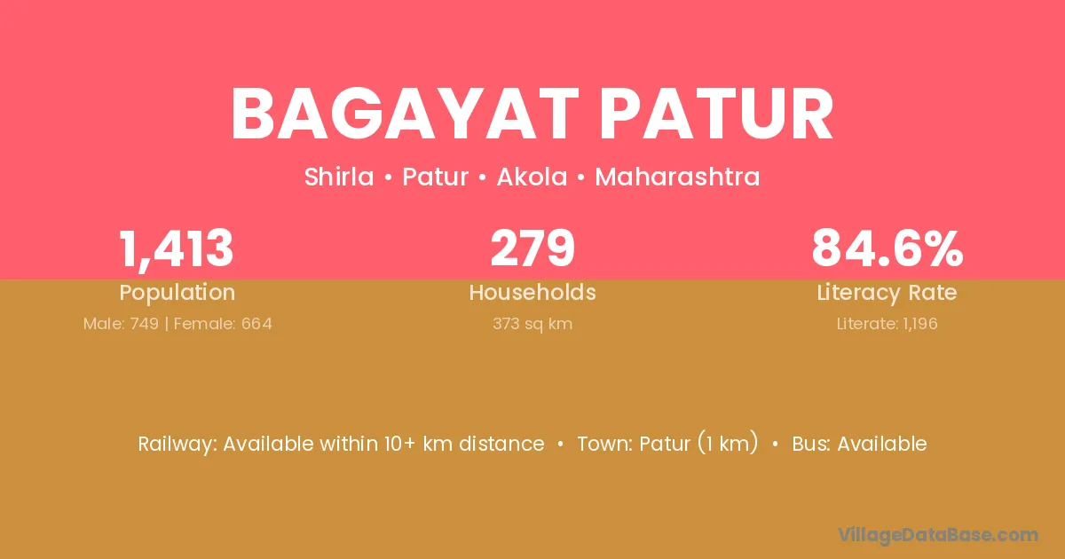 Patur (1 km) is the nearest town to Bagayat Patur village for major economic activities and is located approximately 1 km away.