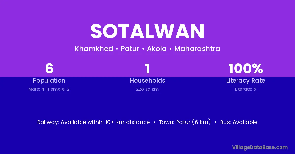 Patur (6 km) is the nearest town to Sotalwan village for major economic activities and is located approximately 6 km away.