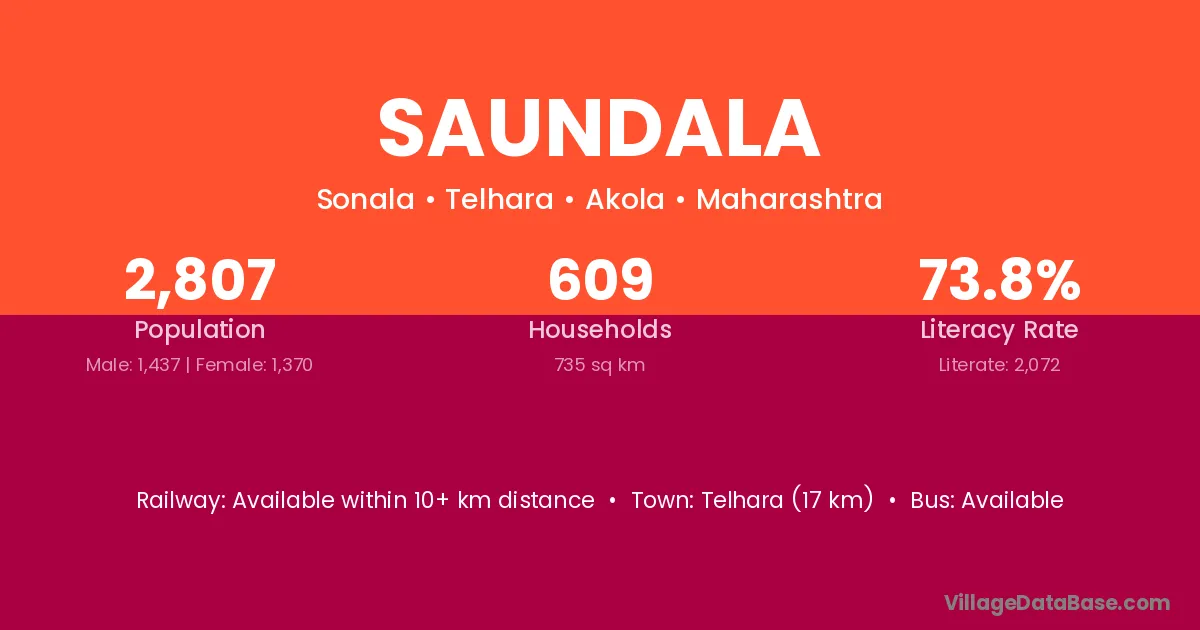 Telhara (17 km) is the nearest town to Saundala village for major economic activities and is located approximately 17 km away.