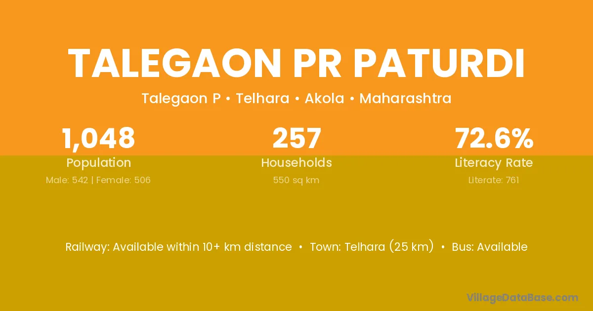 Talegaon Pr Paturdi village has a total population of 1,048 people, of which 542 are males and 506 are females.