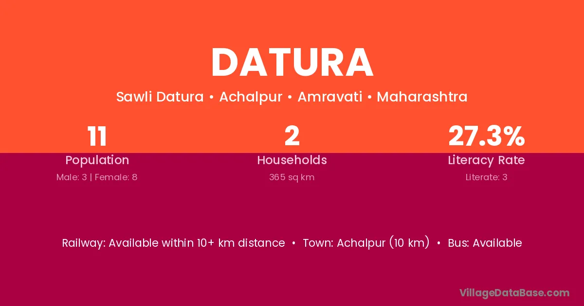 Achalpur (10 km) is the nearest town to Datura village for major economic activities and is located approximately 10 km away.