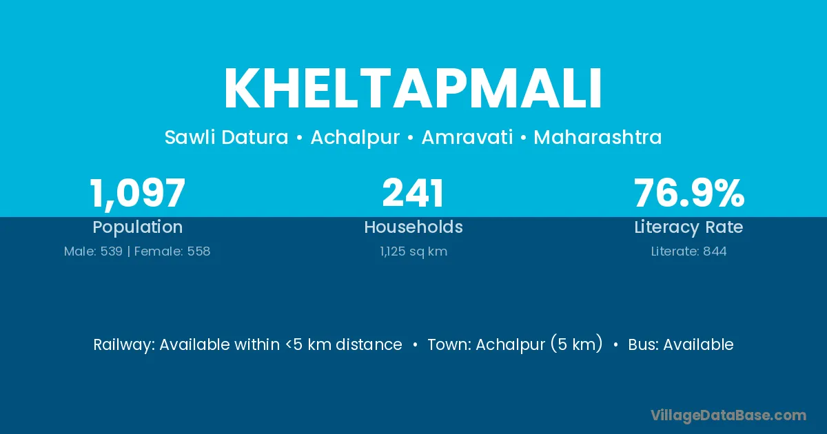 Achalpur (5 km) is the nearest town to Kheltapmali village for major economic activities and is located approximately 5 km away.