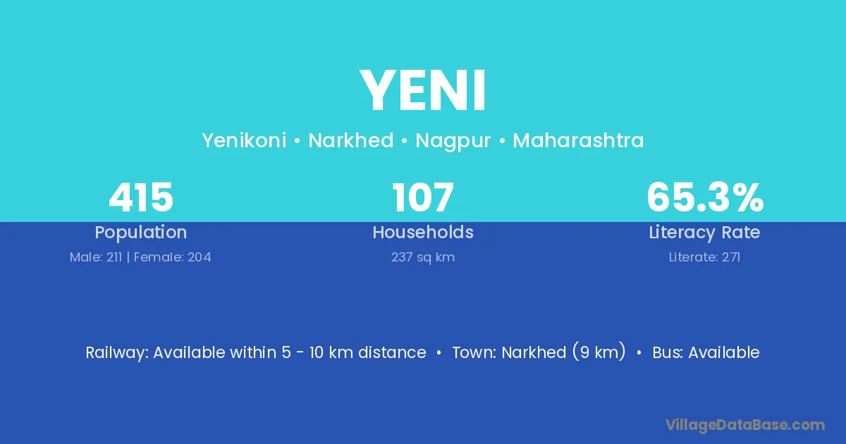 Achalpur (10 km) is the nearest town to Yeni village for major economic activities and is located approximately 10 km away.