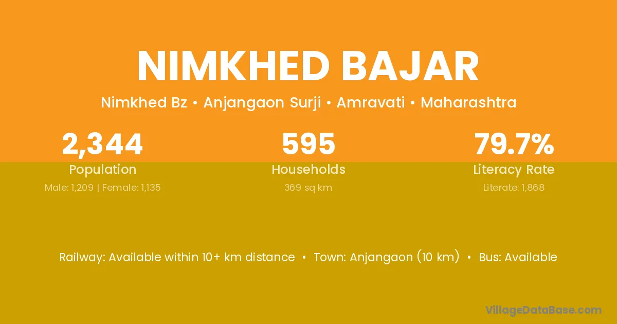 Anjangaon (10 km) is the nearest town to Nimkhed Bajar village for major economic activities and is located approximately 10 km away.