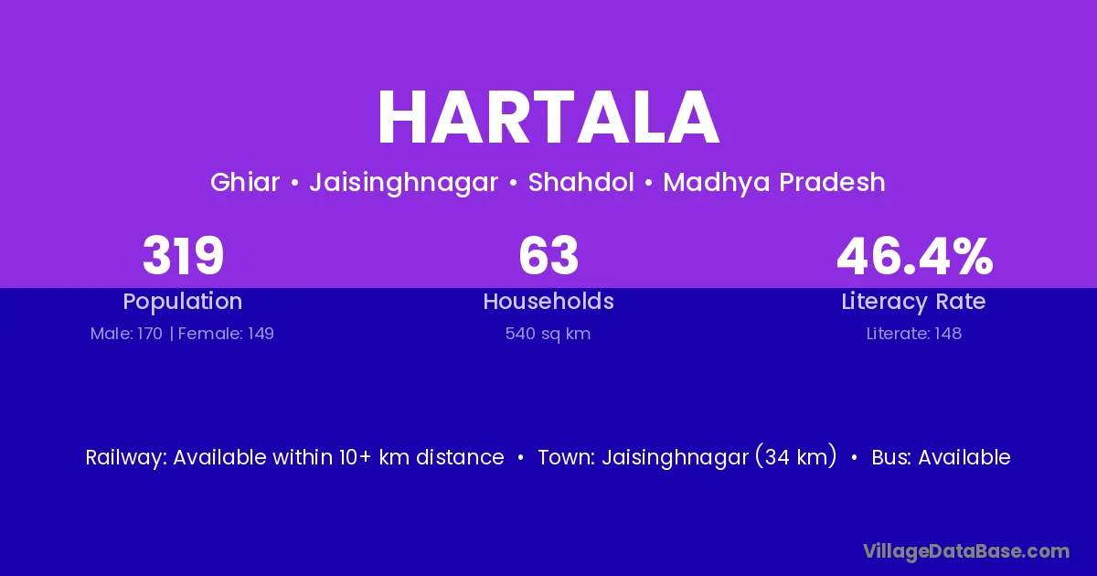 According to Census 2011 information, the village code of Hartala village is 444802.