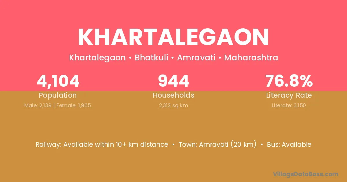 Amravati (20 km) is the nearest town to Khartalegaon village for major economic activities and is located approximately 20 km away.