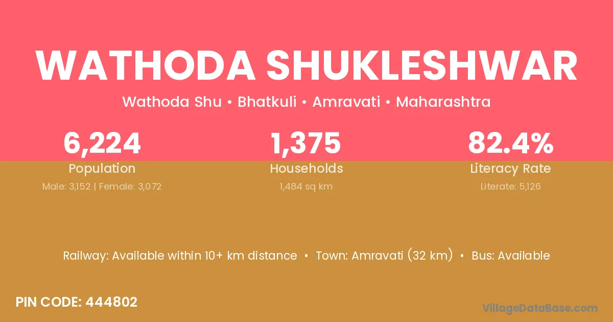 Amravati (32 km) is the nearest town to Wathoda Shukleshwar village for major economic activities and is located approximately 32 km away.