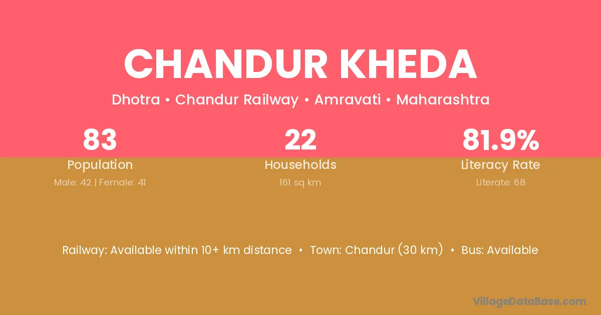 Chandur Kheda village has a total population of 83 people, of which 42 are males and 41 are females.