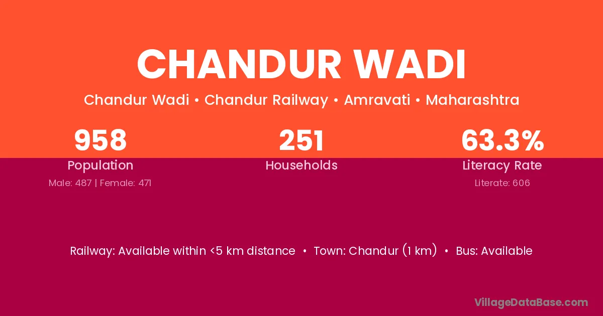 Chandur Wadi village has a total population of 958 people, of which 487 are males and 471 are females.