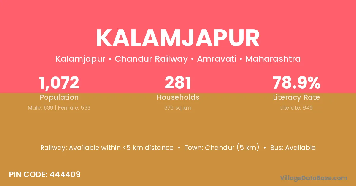 Chandur (5 km) is the nearest town to Kalamjapur village for major economic activities and is located approximately 5 km away.