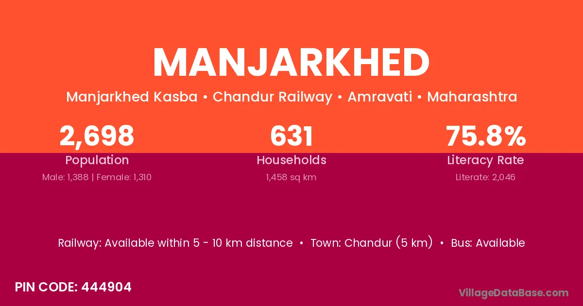 Chandur (5 km) is the nearest town to Manjarkhed village for major economic activities and is located approximately 5 km away.