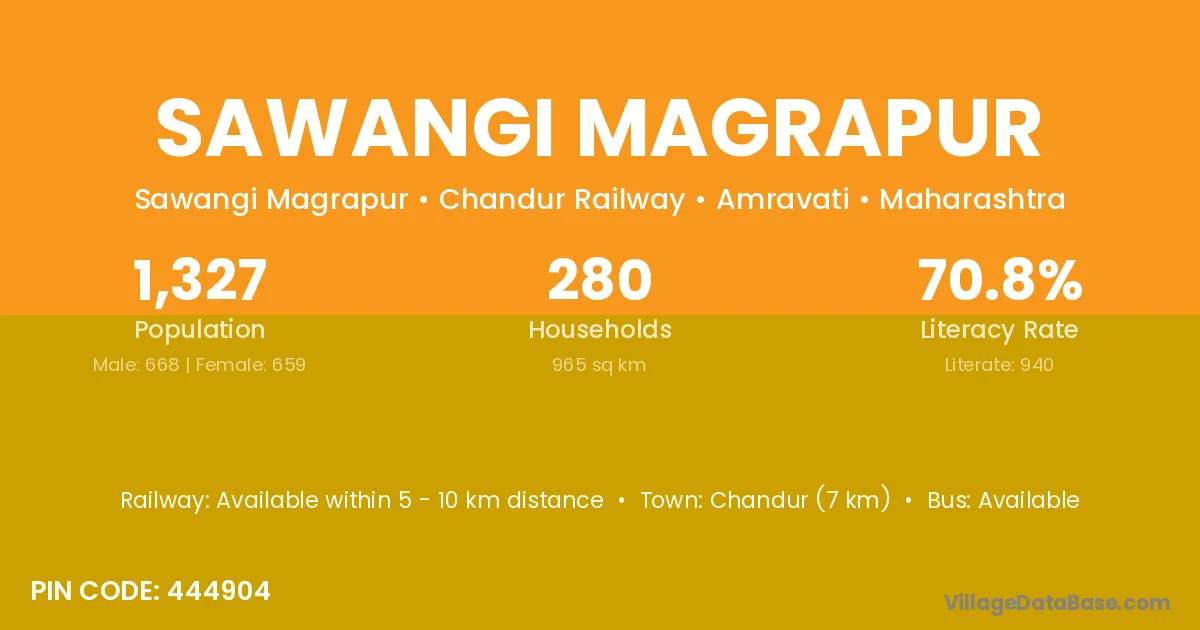 Chandur (7 km) is the nearest town to Sawangi Magrapur village for major economic activities and is located approximately 7 km away.