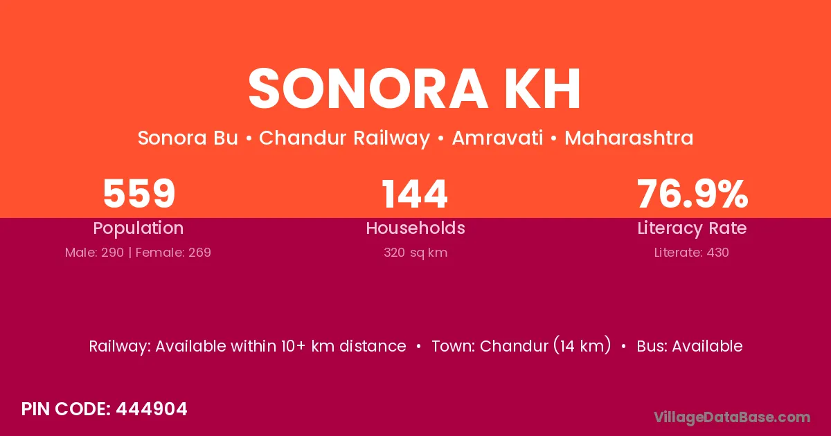 Chandur (14 km) is the nearest town to Sonora Kh village for major economic activities and is located approximately 14 km away.