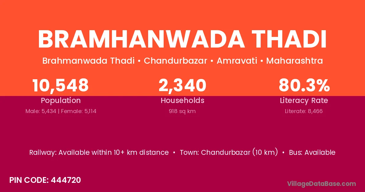 Bramhanwada Thadi village has a total population of 10,548 people, of which 5,434 are males and 5,114 are females.