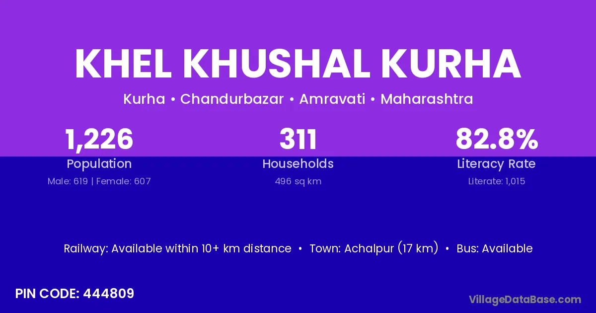 Achalpur (17 km) is the nearest town to Khel Khushal Kurha village for major economic activities and is located approximately 17 km away.