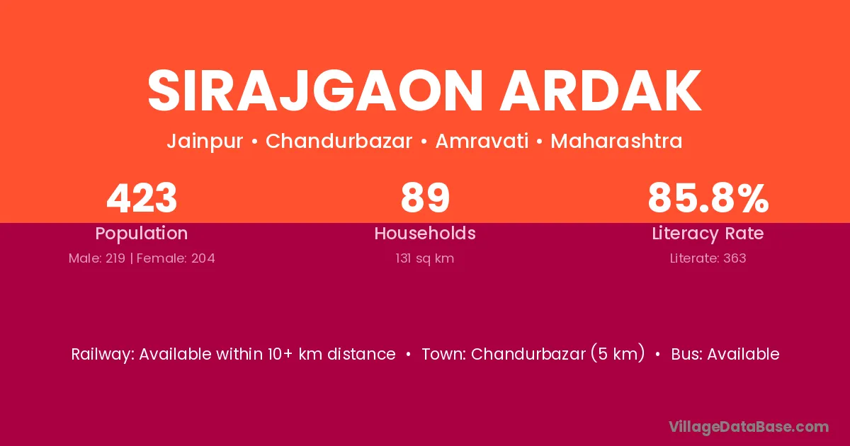 Sirajgaon Ardak village has a total population of 423 people, of which 219 are males and 204 are females.