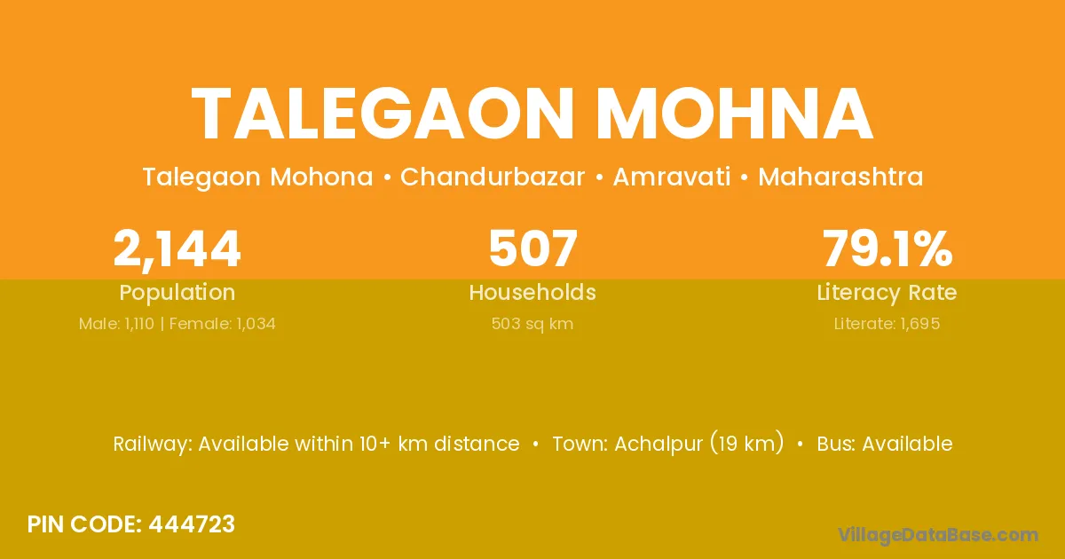 Achalpur (19 km) is the nearest town to Talegaon Mohna village for major economic activities and is located approximately 19 km away.
