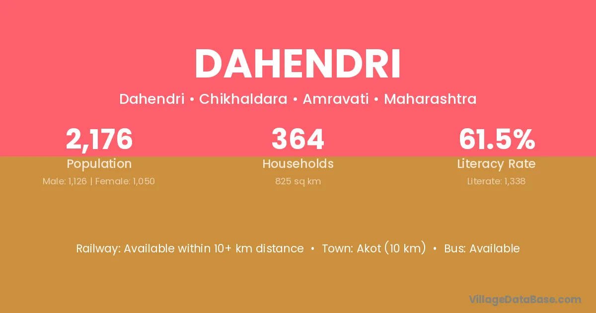 Akot (10 km) is the nearest town to Dahendri village for major economic activities and is located approximately 10 km away.